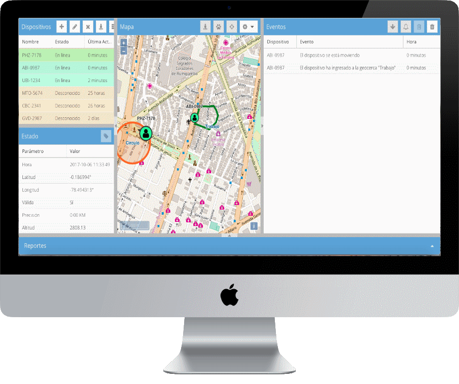 El usuario o administrador de la flota podrá visualizar la posición exacta del automotor en cualquier momento en tiempo real y obtener reportes permanentes con respecto al recorrido, la velocidad, las paradas, las horas trabajadas, consumo de combustible (estimado), mantenimiento por kilometraje.